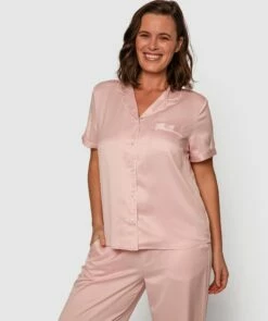 Our Liquid Satin Short Sleeve shirt in light pink is a sumptuous pyjama top that you won’t feel ashamed to wear out of the house! This beautiful shirt is elegant and luxe while providing maximum comfort. Wind down in style for some sweet dreams.
